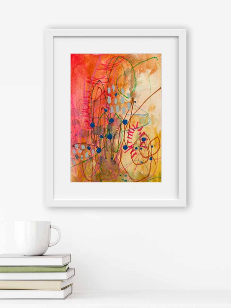 Acrylic, watercolour, felt pen and oil pastels on watercolour paper.