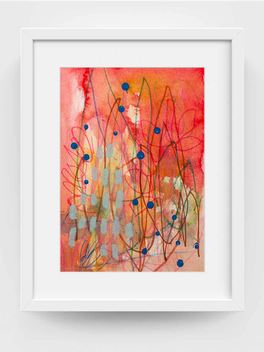 Acrylic, watercolour, felt pen and oil pastels on watercolour paper.
