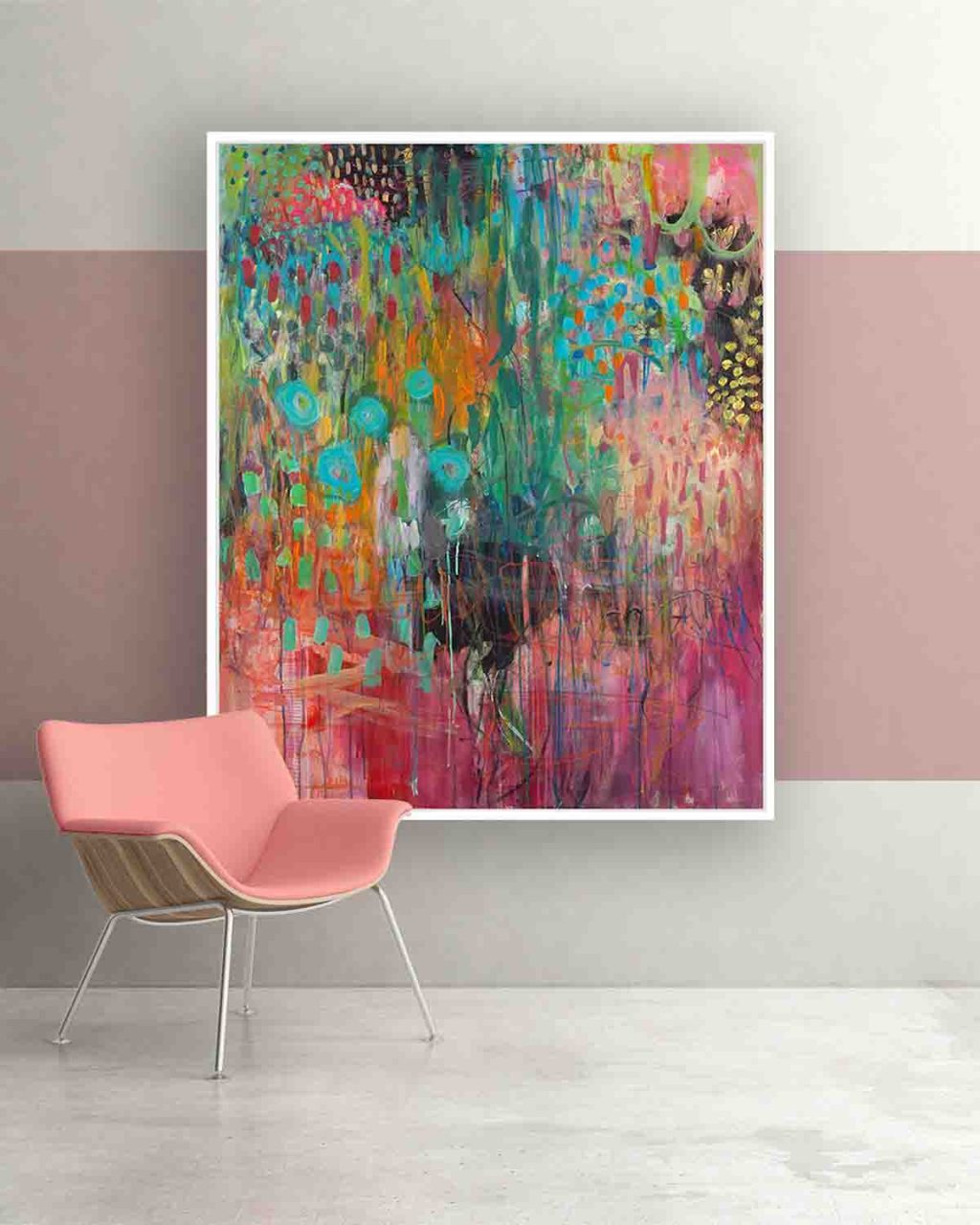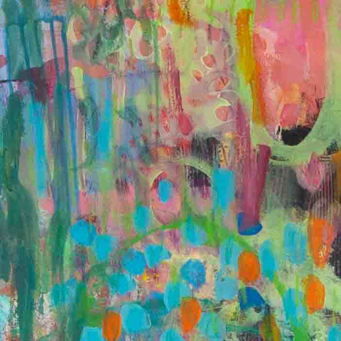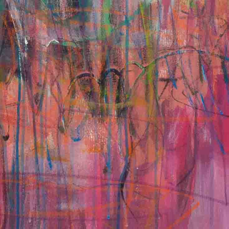Mixed Media: Acrylic, pastels and graphite on hand made canvas.