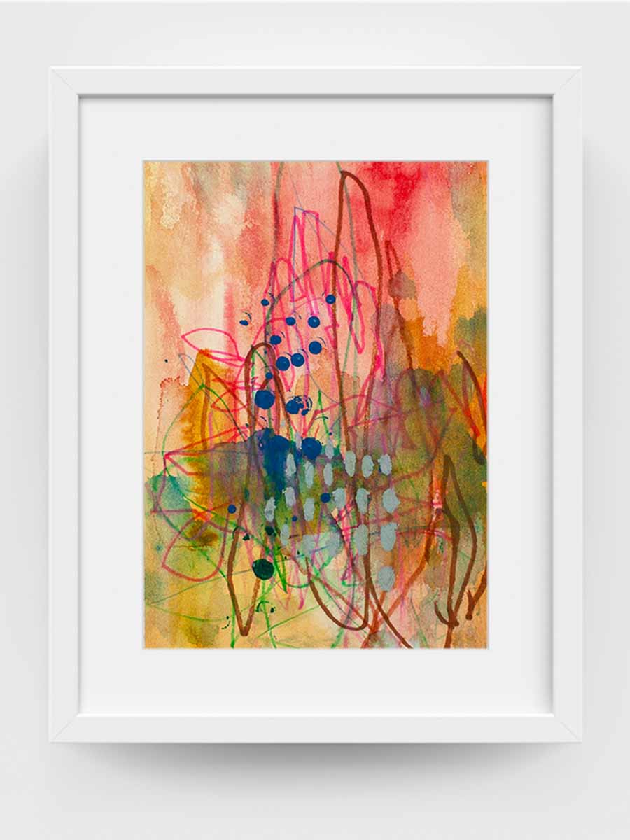 Acrylic, watercolour, felt pen and oil pastels on watercolour paper.