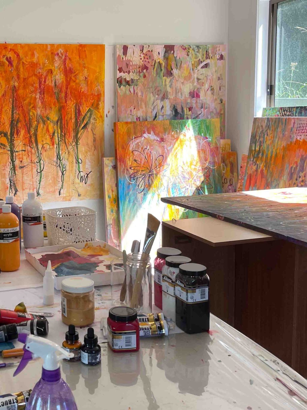 Take a look through my studio and see my latest works in progress and my creative process. Your feedback and messages are always cherished. Enjoy exploring these colourful moments.